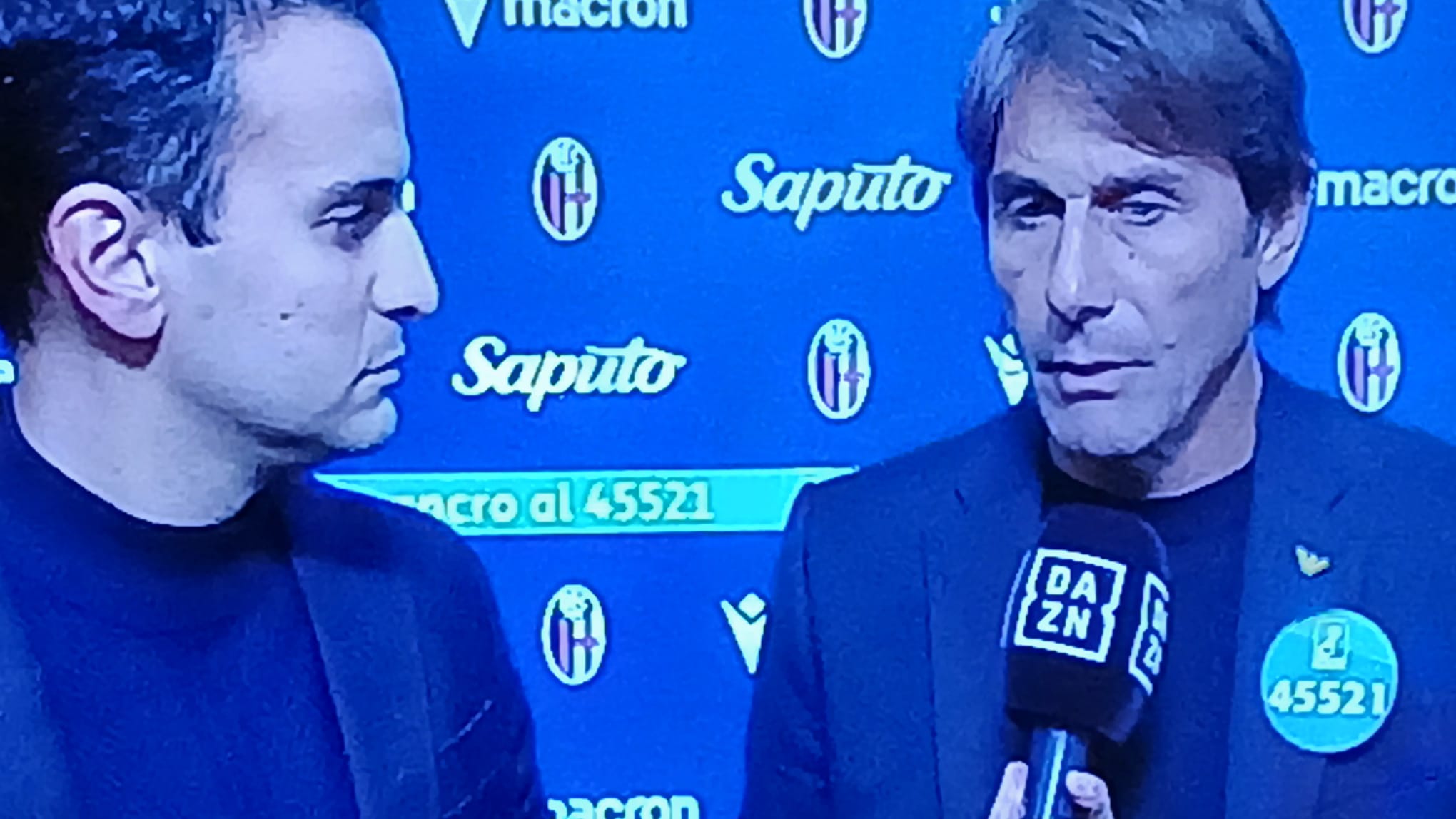 BOLOGNA – Antonio Conte appare spento e preoccupato di fronte alle telecamere per l’intervista post-partita di Bologna-Napoli, conclusasi con una dura sconfitta per gli azzurri.