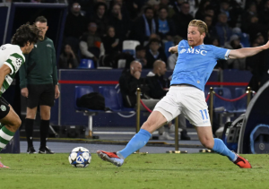 Quello che indubbiamente sorprende rispetto a qualsiasi pronostico della vigilia è la posizione di De Bruyne, talmente vicino al centravanti da sembrare davvero una seconda punta, seppure assai atipica. Libero di muoversi come meglio crede, scegliendo la zona da occupare a seconda dei momenti del match, il belga legge in anticipo la disposizione dello Sporting, costringendolo a ripiegare, al punto da smascherarne l’intenzione di ridisegnare il 4-2-3-1 iniziale in uno stretto e corto 5-4-1 volto a fare grande densità sottopalla. Punendolo con cinismo e intelligenza in occasione dell’azione del vantaggio, al culmine di una lunga transizione, cominciata con un intercetto, i cui ingredienti principali sono stati poi tecnica sopraffina e velocità, di pensiero oltre che di gamba.