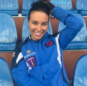 “Sono riuscita a fare della passione la mia professione, altrimenti sarebbe stato complicato abbinare i ritmi serrati scanditi da gare e allenamenti. Con orgoglio porto avanti quotidianamente i valori universali dello sport ed il grande significato della bandiera italiana. Sono cresciuta con mio nonno, che nelle nostre lunghe biciclettate mi raccontava dei fatti del Piave, durante la Prima Guerra Mondiale. Quindi, il concetto di patriottismo mi è stato inculcato sin da bambina. Sentimento che vivo con coinvolgimento ancora oggi, la mattina, durante l’alzabandiera…”.
