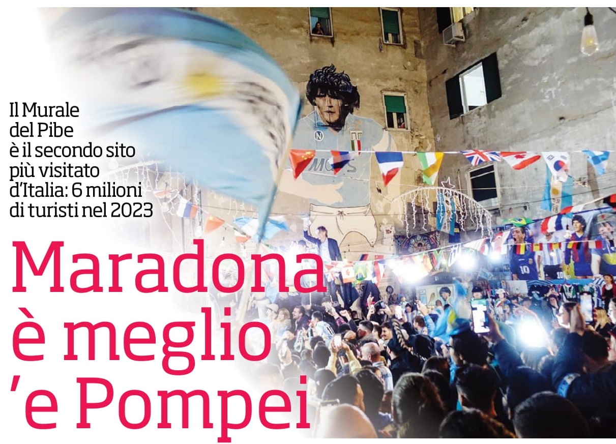 Ieri il Sole 24 Ore ha parlato dell’ultimo miracolo di Diego, che vede il suo murales con più visitatori rispetto agli scavi di Pompei. A prescindere dal fatto che è impossibile stabilire un numero sicuro di visitatori, è certo che il fenomeno esiste.