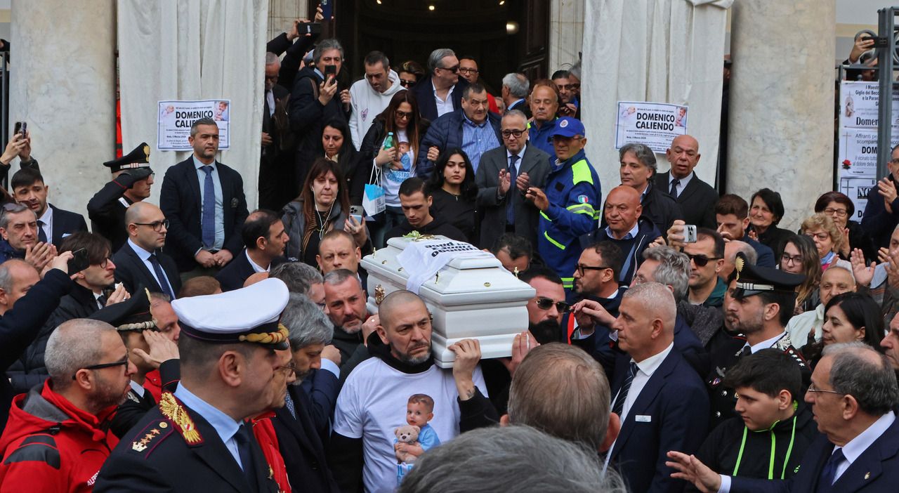 NOLA Se ne va sulle note di “guerriero” di Marco Mengoni nella sua piccola bara bianca coperta dai fiori. Se ne va salutato da un lunghissimo applauso degli oltre mille stipati sul sagrato della Cattedrale di Nola. Ma se le lacrime facessero rumore, nel suo ultimo viaggio Domenico Caliendo avrebbe ascoltato un impetuoso, assordante fiume di lacrime. Capace di coprire anche i versi di una canzone che sembra scritta proprio per questo bambino forte e sfortunato.