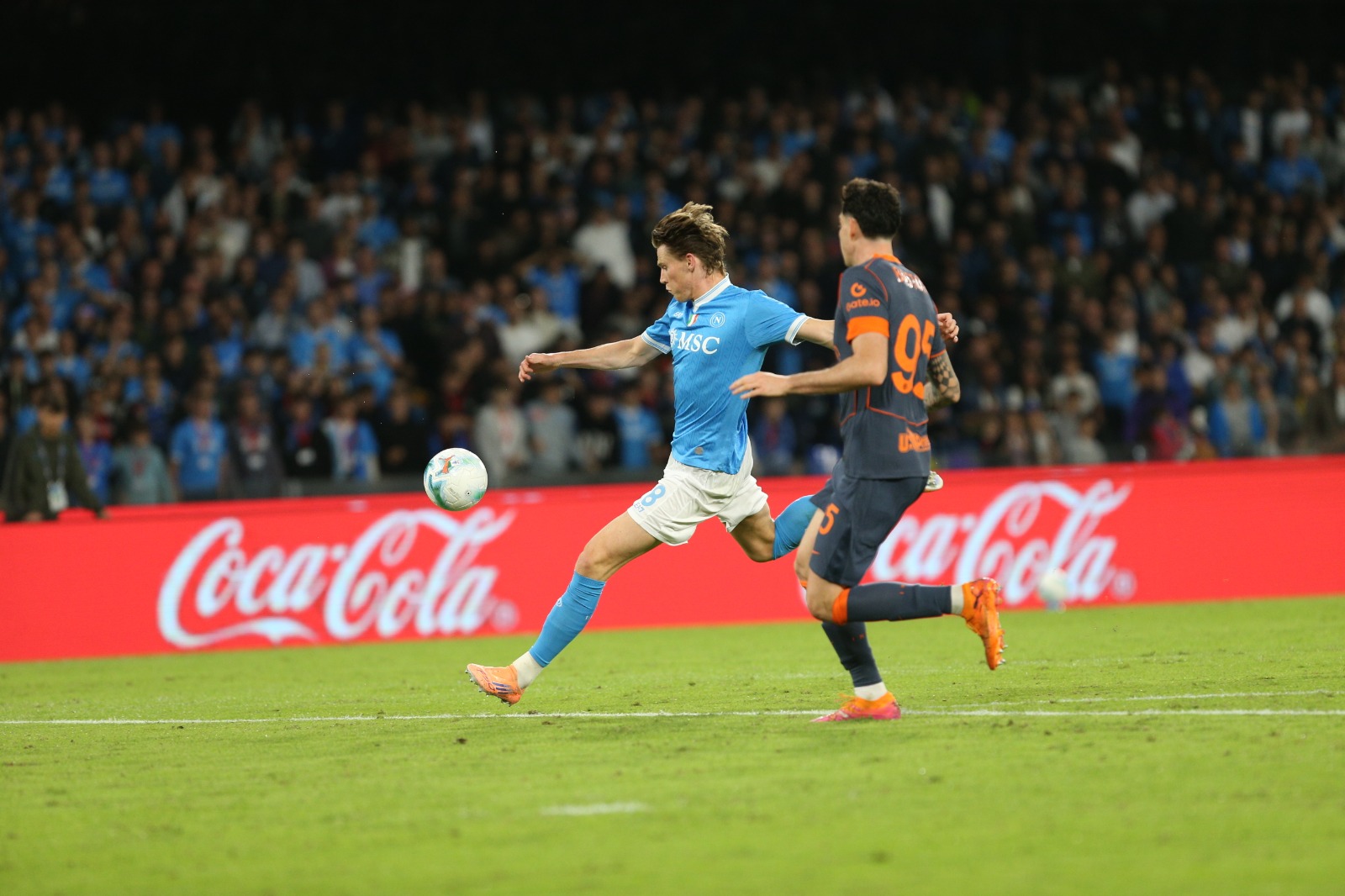 Solitamente era Acerbi ad uscire in closeout, assorbendone i movimenti a mezzaluna. Ma libero di spostarsi sull’intero fronte offensivo, il numero 7 costringeva a seguirlo, generando forti incomprensioni con i braccetti difensivi (Akanji, o Bastoni), smarriti e spesso in ritardo, sostanzialmente incapaci di leggerne celermente le intenzioni. Ovvero, se le sue corse avessero orientato il flusso del possesso in ampiezza anziché nello spazio profondo. A destrutturare l’Inter sottopalla forse ha contribuito oltremisura l’infortunio di Mkhitaryan: l’armeno, assieme a Barella, riusciva a scalare con il giusto timing, limitando efficacemente i tagli di Anguissa e McT. Al contrario, Zielinski non si è speso più di tanto nei ripiegamenti. Del resto, all’ombra del Vesuvio lo conoscono bene: il polacco si lascia apprezzare per le sue doti in costruzione e rifinitura. Ma interpreta in maniera scolastica raddoppi e contrasti. Morale della favola, senza una mediana in grado di sporcare le tracce di passaggio al Napoli, impedire ai Campioni d’Italia di dominare fisicamente il match, era praticamente impossibile.