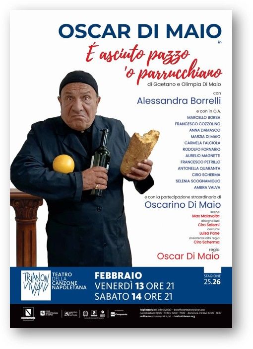 Oscar Di Maio – quarta generazione della famiglia teatrale fondata da Crescenzo Di Maio nel 1875 – è il protagonista e il regista di È asciuto pazzo ‘o parrucchiano, una commedia classica scritta dagli zii Gaetano e Olimpia.