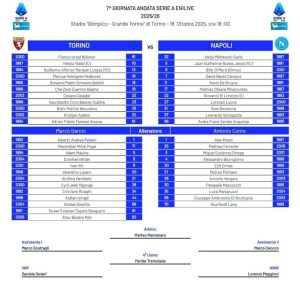 Confermati Milinkovic Savic in porta, Neres sulla fascia al posto di Politano. Centrale in difesa Beukema, con Buogiorno in panchia, insieme a Politano