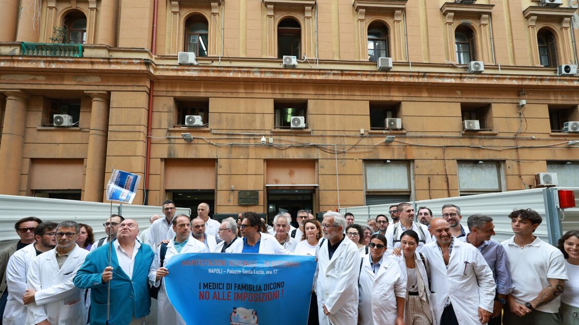 “Chiedete ai candidati alla presidenza della Campania perché i medici di famiglia stanno scappando e rischiamo di non averne più”. È l’appello lanciato da Salvatore Caiazza, medico di base dell’Asl Napoli 2, durante la protesta organizzata oggi davanti alla sede della Regione, dove circa un centinaio di camici bianchi si è mobilitato contro la nuova normativa nazionale che impone ai medici di medicina generale di prestare servizio anche nelle Case di Comunità, con orari stabiliti dalle Asl.