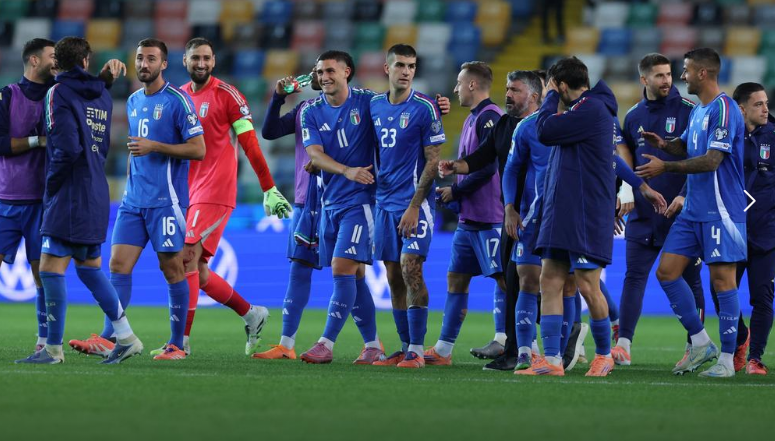 Nella serata più triste, la morte dei tre carabinieri, e più kafkiana del calcio italiana, non si può parlare di calcio, quando è in corso una manifestazione “Pro Pal “che iniziata in maniera pacifica si è trasformata in guerriglia urbana a causa di delinquenti infiltrati, la nazionale italiana di calcio centra l’obiettivo minimo dei play -off mondiali battendo non senza patemi d’animo la debole squadra d’Israele. La sfida inizia con il doveroso minuto di raccoglimento in omaggio ai carabinieri morti. L’Italia inizia con un 5-3-2 La manovra azzurra è lenta e spocchiosa L’Israele capisce la serata e si rinchiude in difesa aspettando una manovra molto sterile La prima azione è dell’Israele 28’ Salom sfiora il goal del clamoroso vantaggio. Azione in velocità avviata da Clough, rifinita da Baribo e conclusa in area dal numero 10, la cui conclusione viene alzata sopra la traversa da uno strepitoso Donnarunna Intanto ad Udine scontri tra polizia e manifestanti Pro-Pal, poi fischi all’inno israeliano prima della partita 19’ Il cross di Khalaili raggiunge Gloukh che conclude da lontano col destro: potente ma non inquadra bene lo specchio e la palla si perde oltre la linea di fondo, non troppo lontana dal palo. Italia imbambolata 27’ Gigio provvidenziale sulla conclusione di Solomon: il numero uno azzurro spedisce oltre la traversa la conclusione dell’israeliano. Proteste dell’Italia per un fallo su Raspadori non fischiato dall’arbitro all’inizio di questa azione. La prima vera azione dell’Italia al 38’ Il difensore israeliano Balata in scivolata nega il tiro a Retegui che gli frana addosso. Entra in campo lo staff medico degli ospiti. Al 45’ la svolta Fallo in area di Baltaxa su Retegui. Dal dischetto va lo stesso ex Atalanta. che segna Italia in vantaggio immeritatamente Gigio para la conclusione di Gloukh che la difesa azzurra non era stata in grado di bloccare prima La partita scivola lenta e noiosa fino a quando l’Italia raddoppia Al 74’ Doppietta di Retegui con un gran gol! Recupera un pallone sulla trequarti, si gira, si accentra e dal limite dell’area lascia partire il tiro a giro verso l’incrocio dei pali lontano. Gran gol per blindare la vittoria a quasi un quarto d’ora dalla fine di questa partita. L’Israele non s’arrende Al 77’ Salomon prova a riaprire la sfida Spunto sulla sinistra di Israele: Solomon viene lanciato da Gloukh, Mancini non chiude bene, Calafiori si scontra in modo fortuito con Donnarumma e il numero 10 degli ospiti calcia ma da posizione defilata. La sua conclusione si spegne sull’esterno della rete. 84’ Esposito sciupa una grossa occasione Brutto errore di Glazer in fase di impostazione, Retegui ne approfitta e serve Esposito che però a tu per tu col portiere israeliano si mangia il terzo gol. Al 93’ Assist di Dimarco, colpo di testa di Mancini ed è 3-0 Finisce una brutta partita che manda l’Italia ai play -off