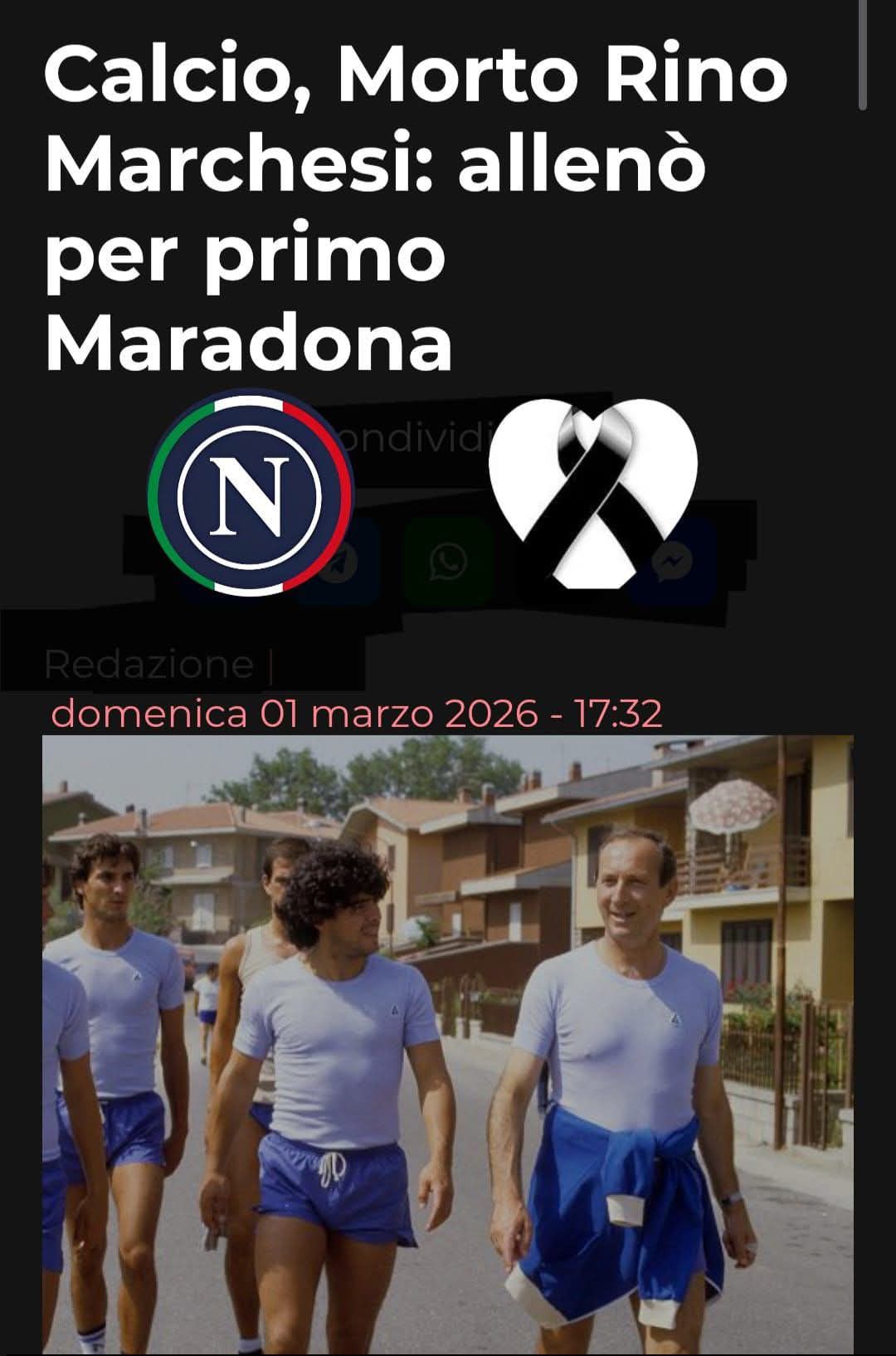 Il presidente Aurelio De Laurentiis e tutta la SSC Napoli hanno voluto ricordarlo attraverso un messaggio pubblicato sui social, rendendo omaggio a un uomo che ha fatto parte della storia del club: “Il Presidente Aurelio De Laurentiis e tutta la SSC Napoli si uniscono al cordoglio per la scomparsa di Rino Marchesi, icona del calcio ed esemplare professionista alla guida degli azzurri dal 1980 al 1982 e dal 1984 al 1985“.