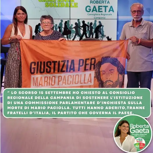 La consigliera ha ringraziato tutti i gruppi consiliari che hanno sostenuto l’iniziativa, sottolineando il valore unitario della decisione. “Davanti al dolore e alla ricerca di verità non ci sono bandiere politiche, ma solo coscienza e rispetto. Giustizia per Mario significa giustizia per tutti”, ha concluso Gaeta.