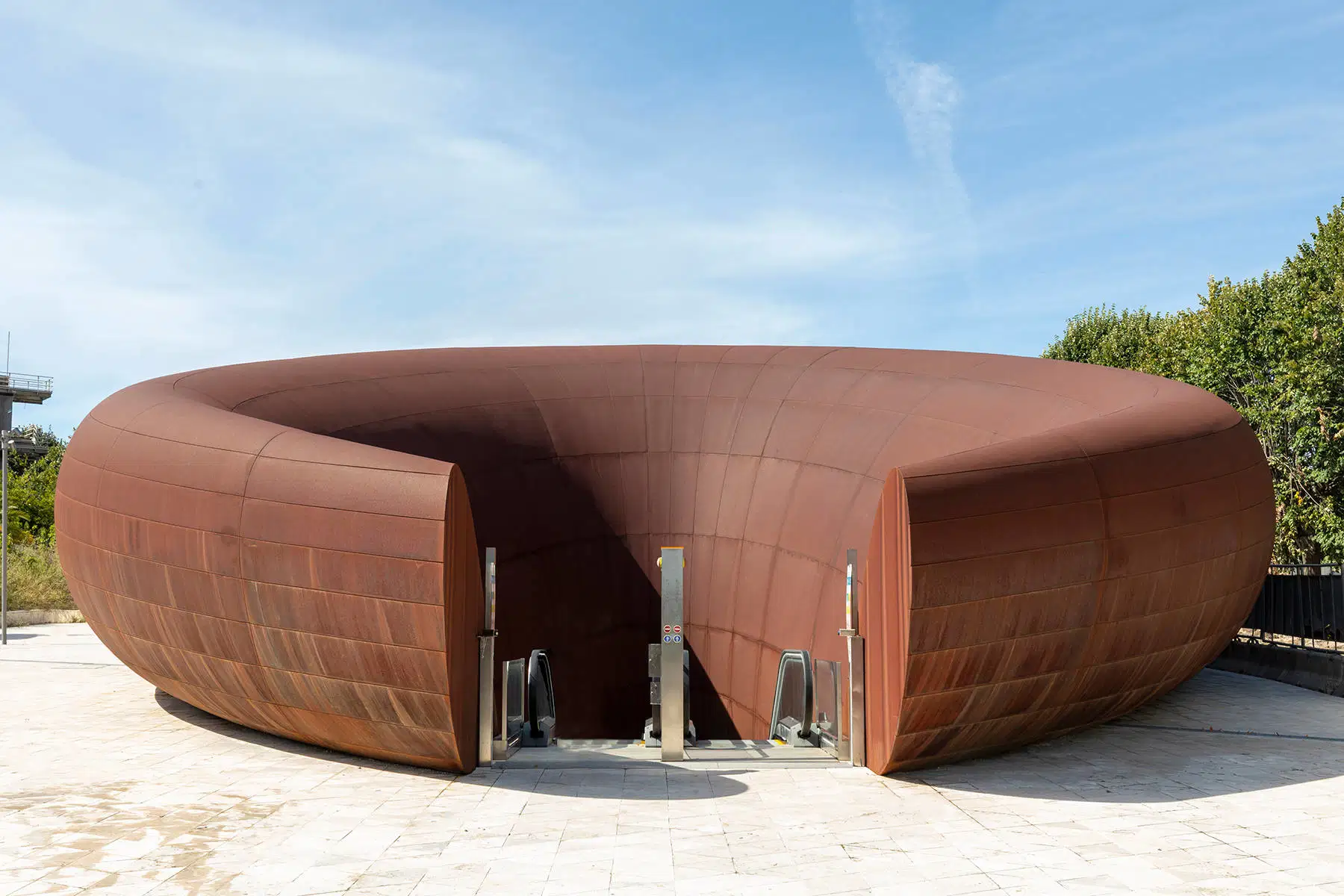 Protagonista assoluto è Anish Kapoor, artista di fama mondiale, che ha firmato due imponenti sculture a forma di bocca. Le opere accolgono i passeggeri all’ingresso e li “trasportano” visivamente nel cuore della metropolitana, trasformando ogni spostamento in un’esperienza sensoriale.